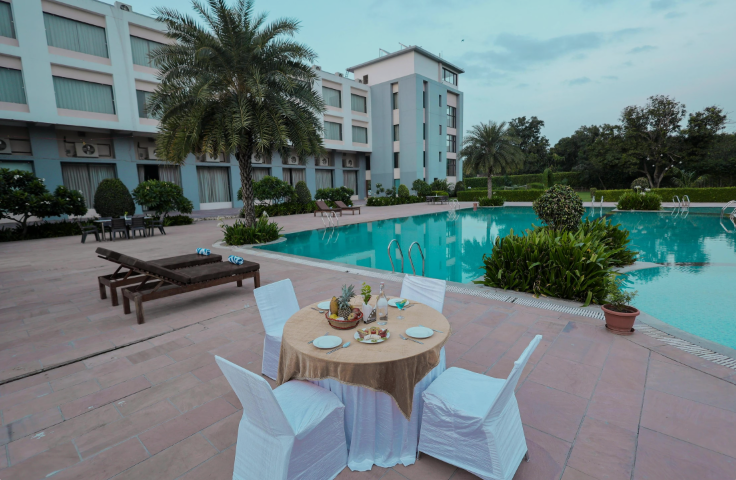 Savitri Resorts Pushkar is a large, greenery-filled resort located on Motisar Road near Pushkar Railway Station in Pushkar, Rajasthan offering spacious accommodation and a pleasant, relaxing stay surrounded by landscaped gardens. It features well-appointed rooms and suites with modern amenities, a large outdoor swimming pool, a multicuisine restaurant, and facilities like free Wi-Fi, 24-hour front desk and free parking, making it a popular choice for families and leisure travelers. The property also has extensive lawns and banquet spaces that are often used for weddings and events.